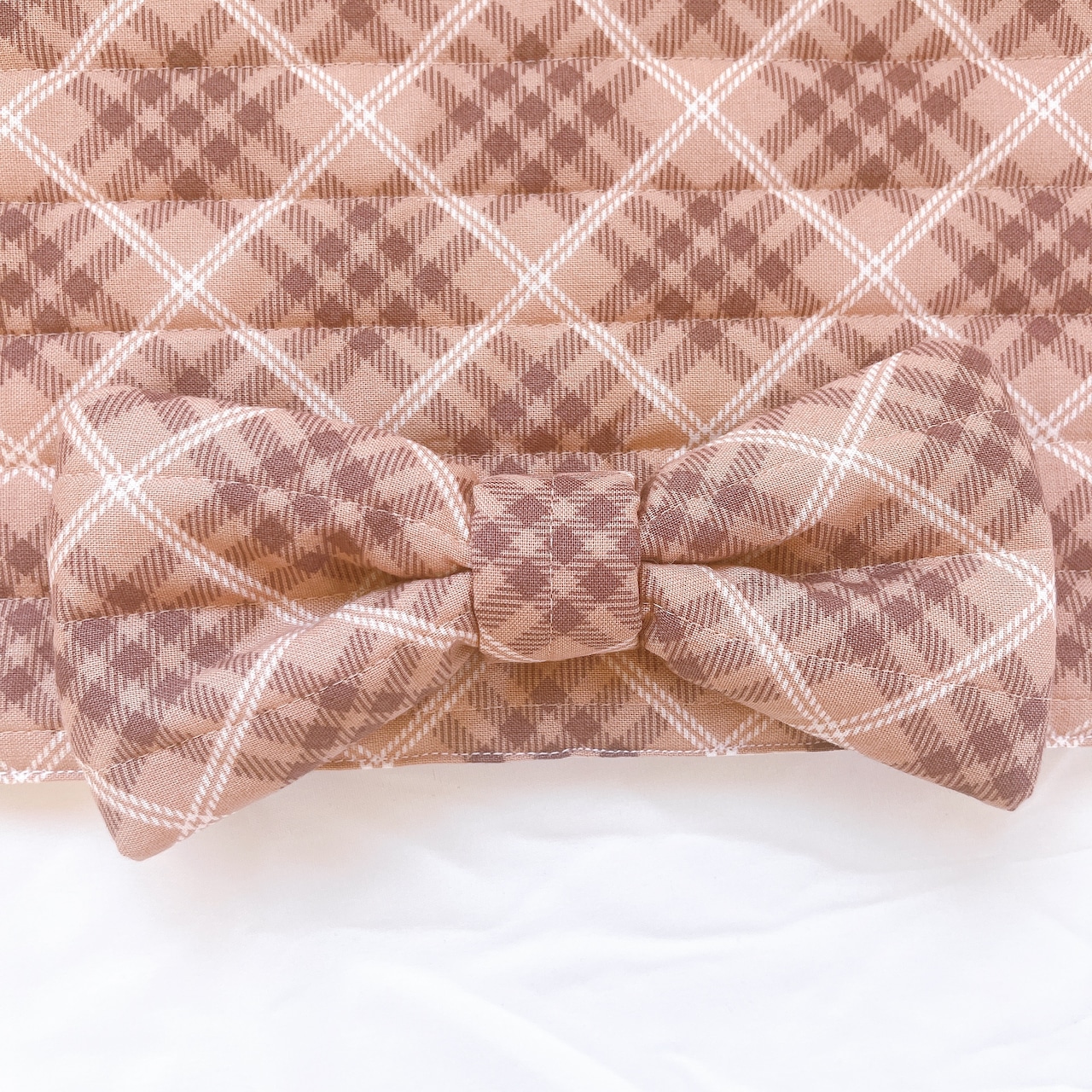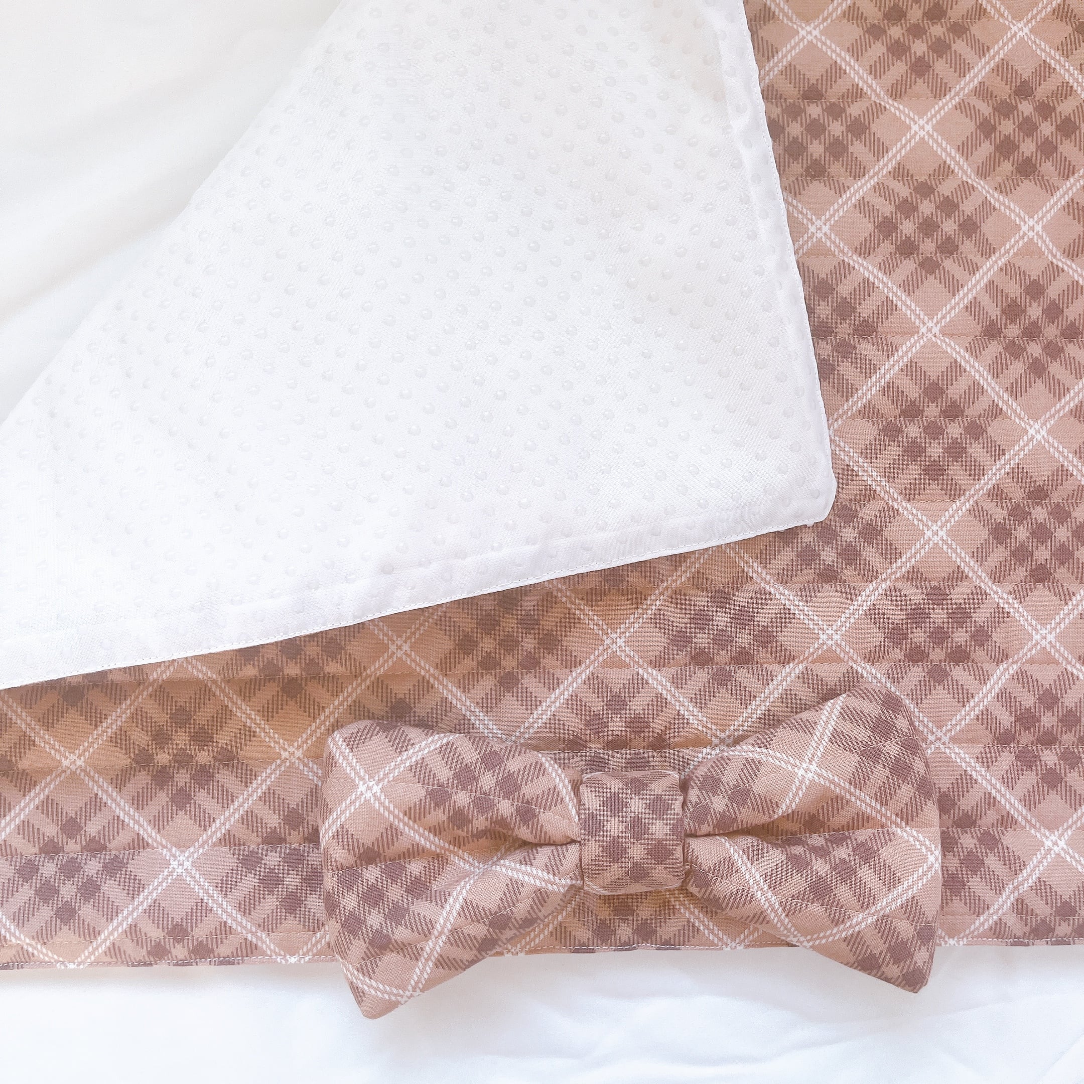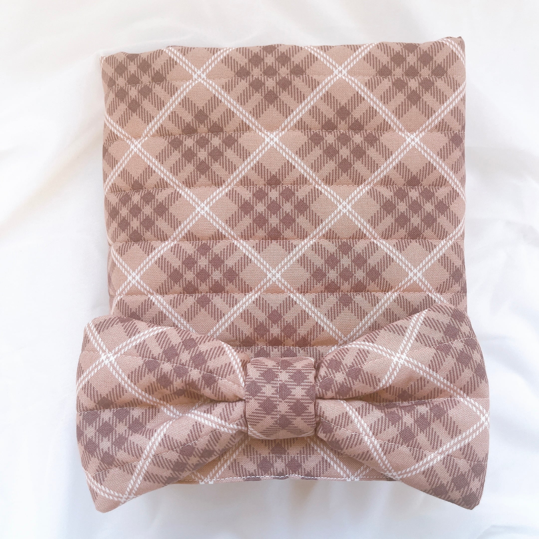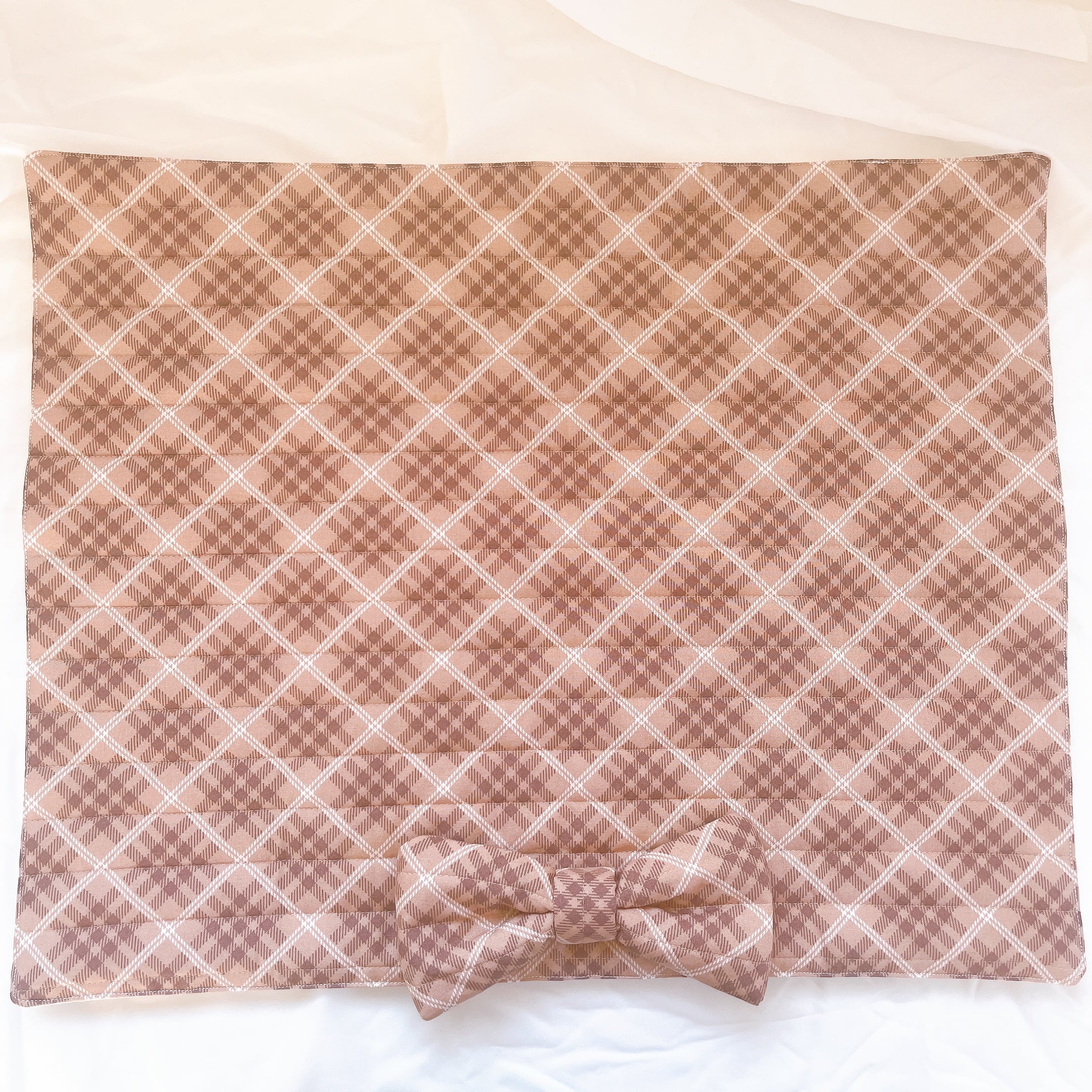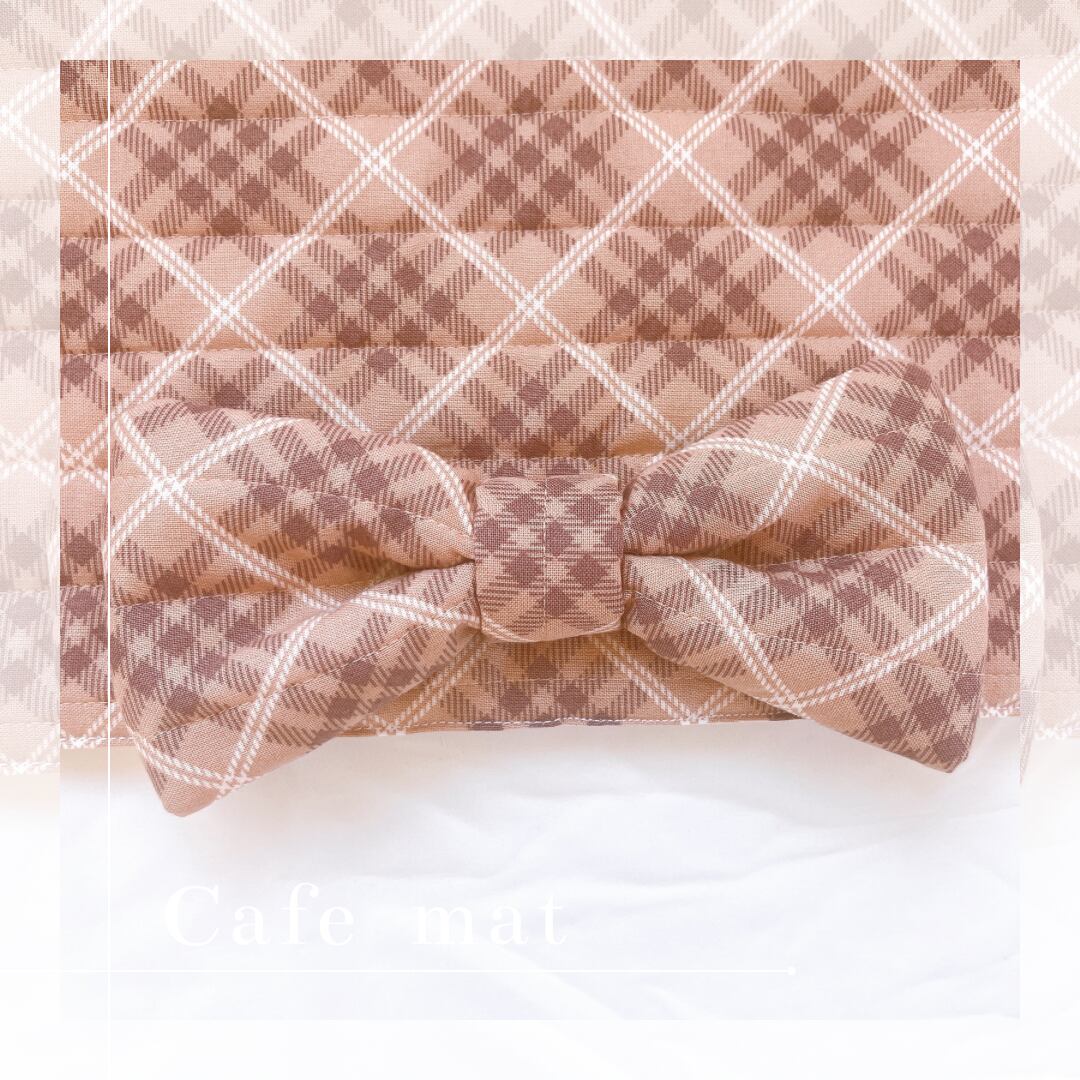シンプルながらもリボンのアクセントが可愛らしいチェックカフェマット。