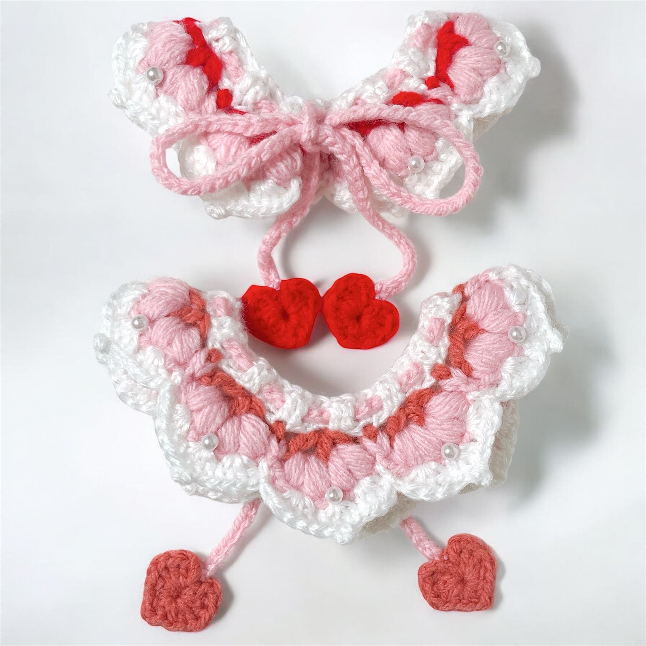 ピンク、パール、ハートの可愛らしい組み合わせのペットスタイです♡